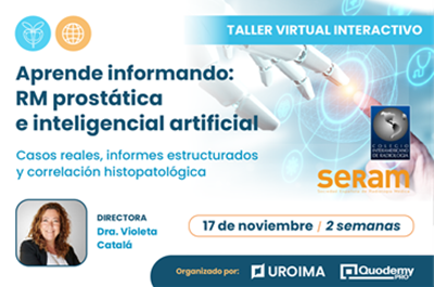Curso 100% on-line, con material disponible en todo momento durante el desarrollo del mismo con participación interactiva del alumno. El curso está dirigido a urólogos, oncólogos radioterápicos, oncólogos clínicos y médicos nucleares. El objetivo general del curso es desarrollar habilidades prácticas en la lectura e interpretación de los estudios de RMmp prostática a modo de facilitar la planificación diagnóstica (biopsia) y terapéutica (terapia focal/prostatectomía radical/radioterapia). Así mismo, el alumno conocerá los principales tipos actuales de biopsia prostática, su utilidad y sus limitaciones.