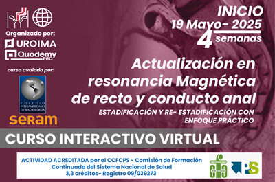 Curso 100% on-line, con material disponible en todo momento durante el desarrollo del mismo con participación interactiva del alumno. El curso está dirigido a médicos radiólogos y residentes de radiología. El objetivo general del curso es desarrollar habilidades prácticas en la lectura, interpretación e indicaciones de técnicas de imagen diagnósticas de la patología urinaria, con especial hincapié en RM y TC.